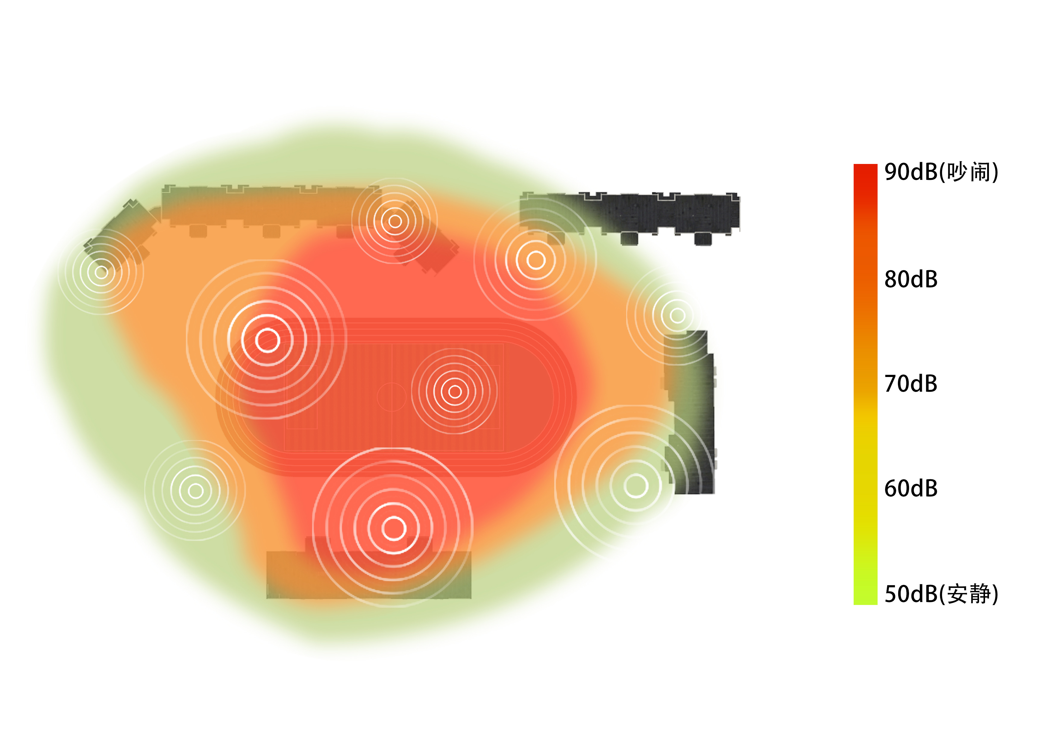 除了指定发声区域外,其他区域音箱传播声压均≤50dB,从源头上解决噪音扰民问题。
